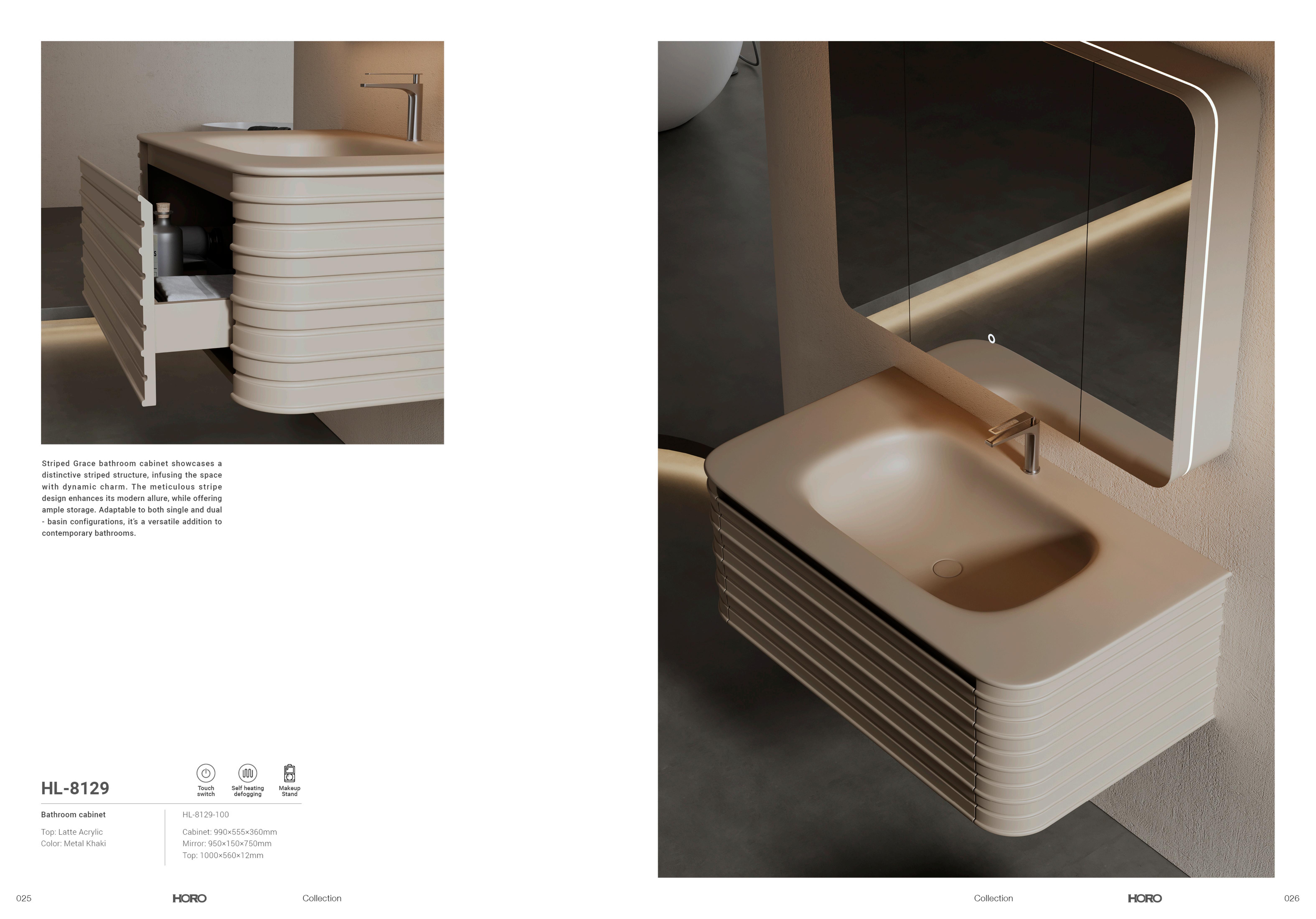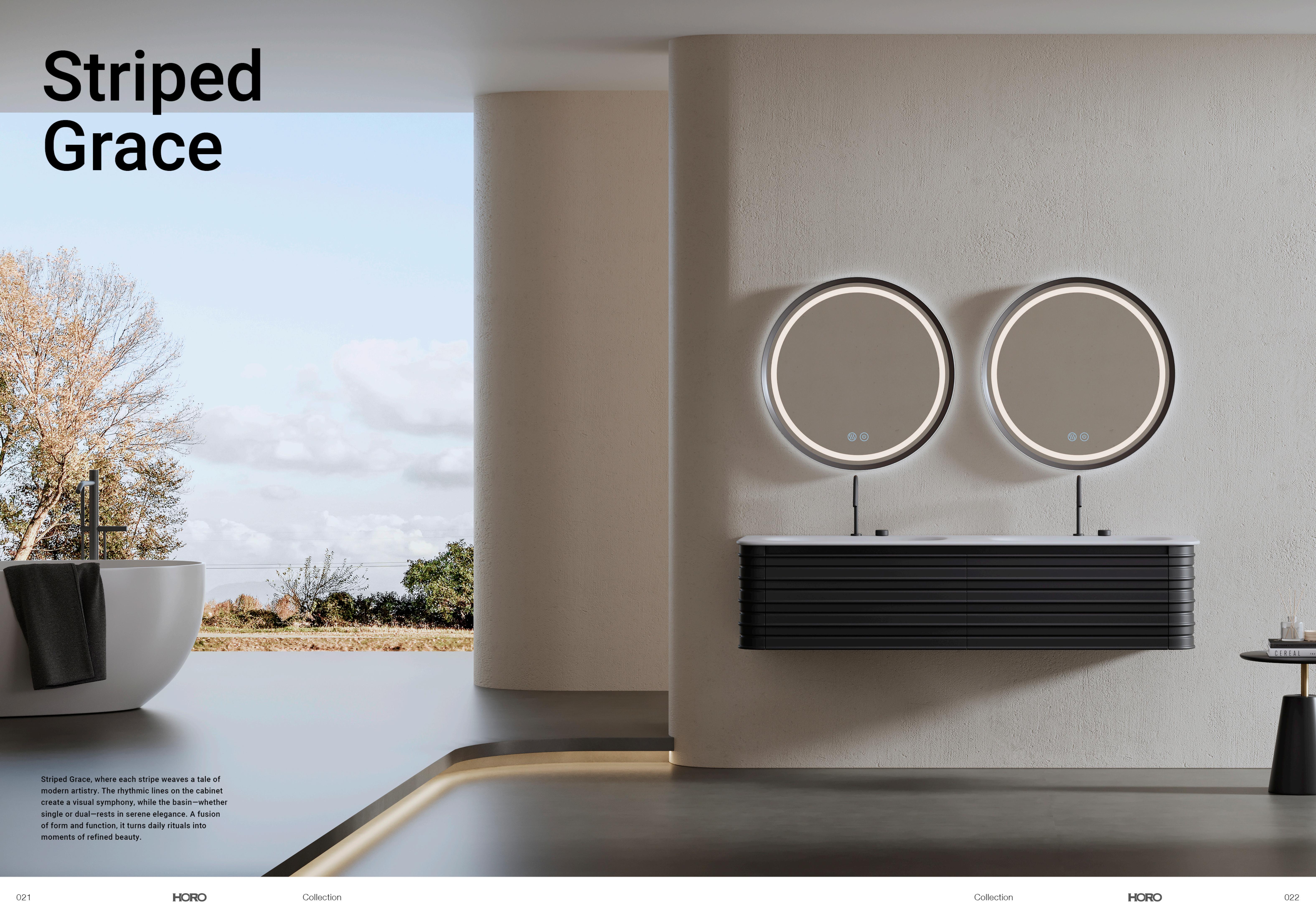 Striped Grace bathroom cabinet showcases adistinctive striped structure, infusing the spacewith dynamic charm. The meticulous stripedesign enhances its modern allure, while offeringample storage. Adaptable to both single and dual-basin configurations, it‘s a versatile addition tocontemporary bathrooms.
